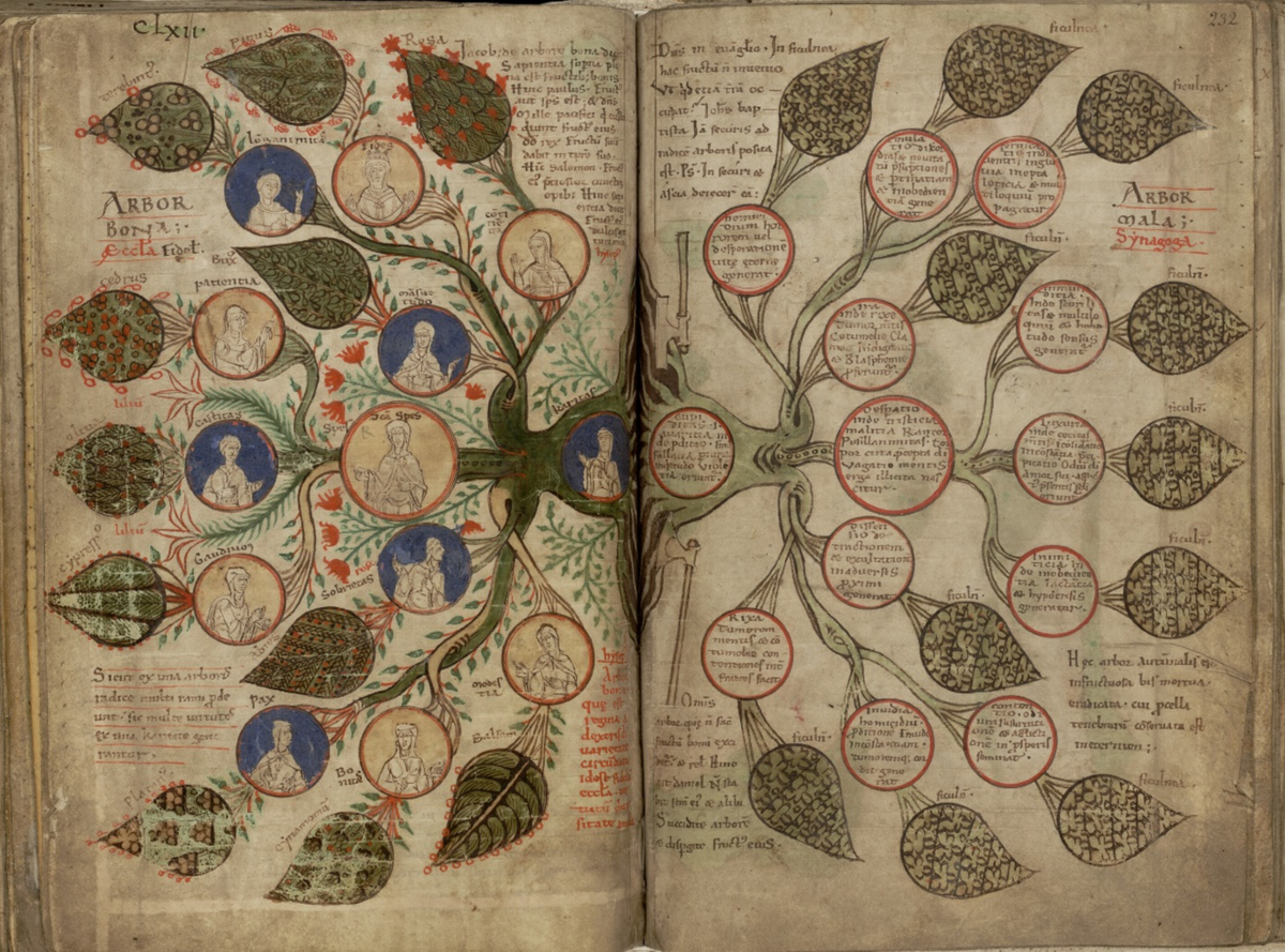 Images of the Trees of Virtue and Vice featured in our 2018 study of Rebecca DeYoung’s book Glittering Vices.